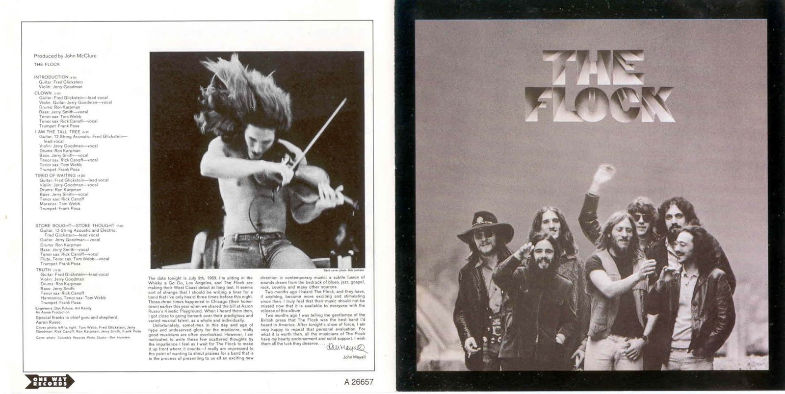 Não tiveram o sucesso de outros grupos de fusão Jazz-Rock como os Blood, Sweat and Tears ou os Chicago, optaram por uma sonoridade menos convencional, foram inovadores ao introduzir o violino como instrumento solista em substituição da usual guitarra. Falamos da banda norte-americana The Flock.